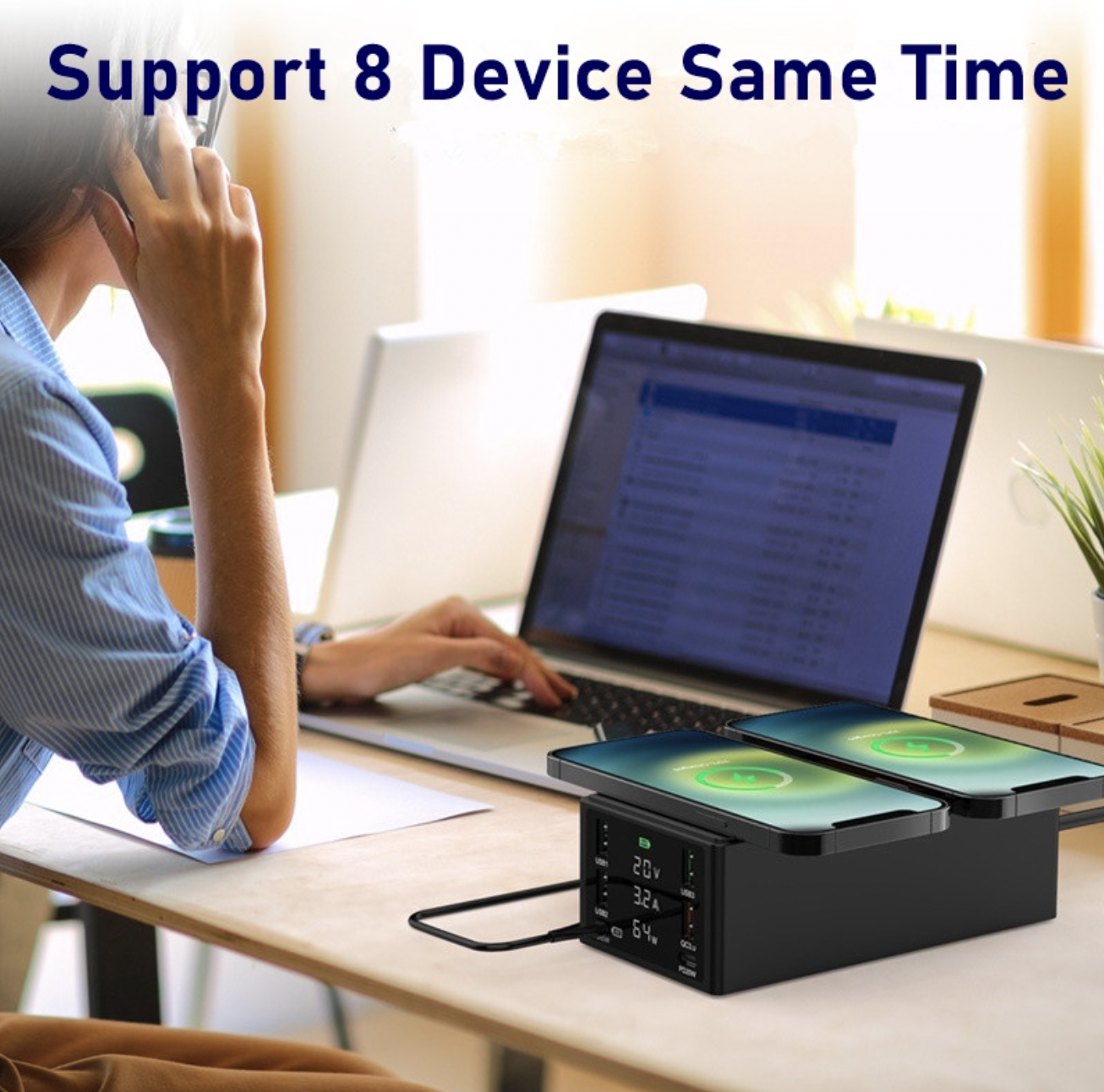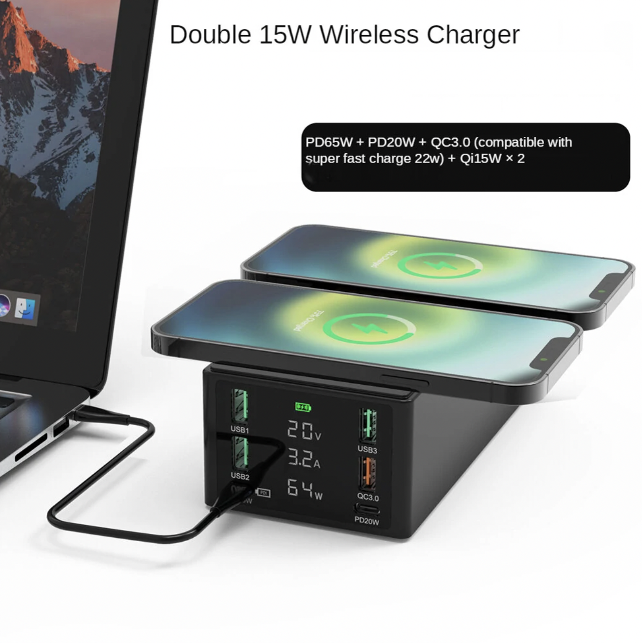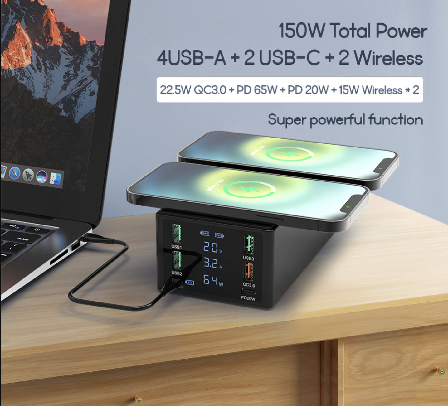 150 W 8 in 1 incarcator USB PD cu 6 porturi si incarcator dublu wireless de 15 W ,Afisaj LED Statie de incarcare pentru desktop Pentru iPhone 12 Pro Max Pentru Apple Watch AirPod Pro Pentru Samsung S20, S21, Note20