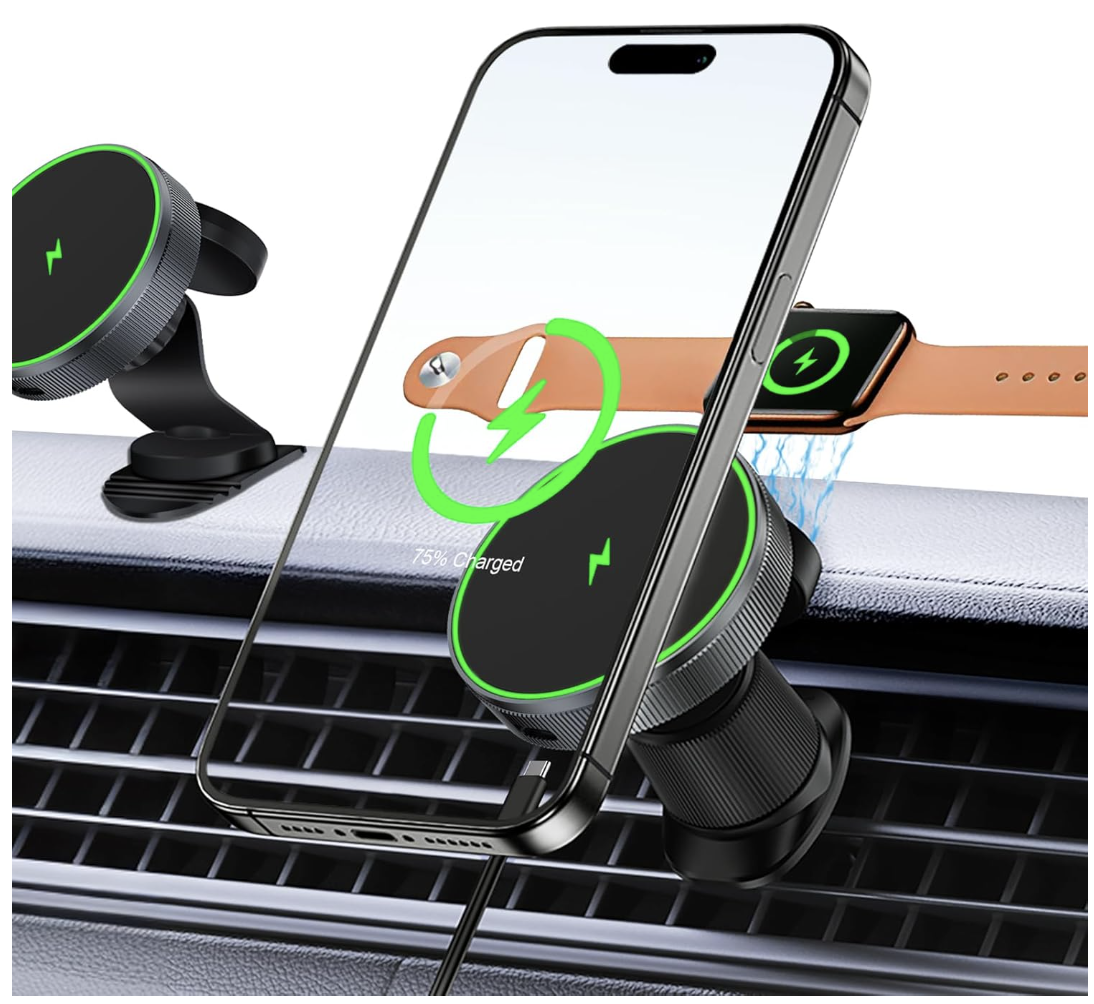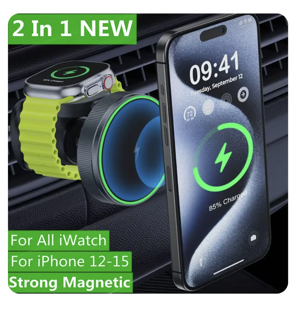 2 in 1 Incarcator Suport pentru masina wireless magnetic 15w incarcare rapida pentru Apple Watch IWatch 8 7 6 iPhone 16 15 14 13 12 Pro max