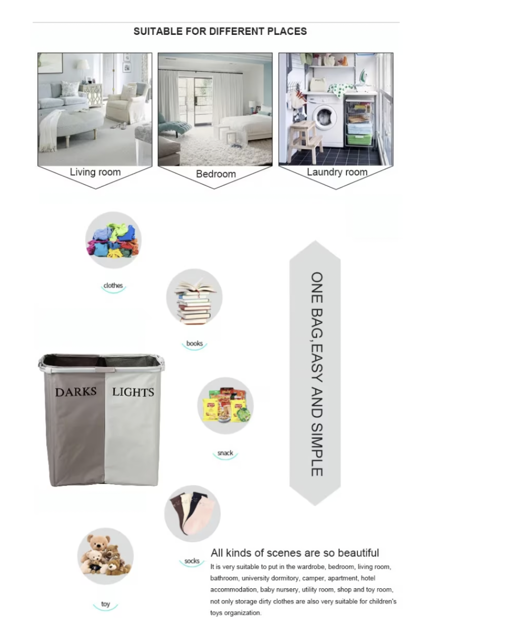 Cos de rufe Oxford durabil 600D de inalta calitate, cu 2 compartimente, pliabil de capacitate mare.