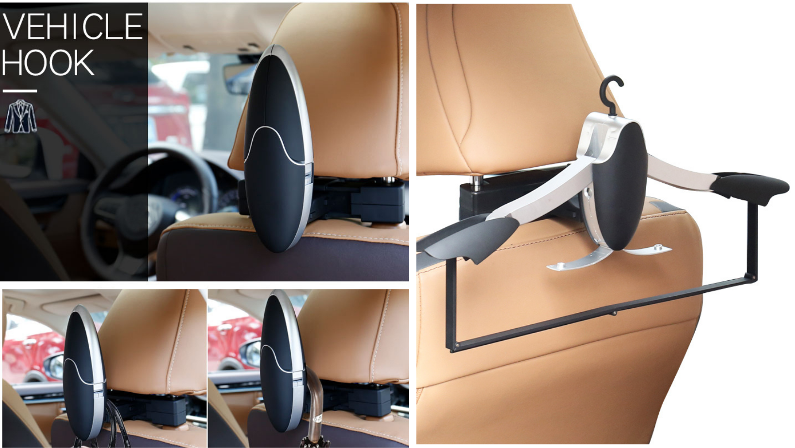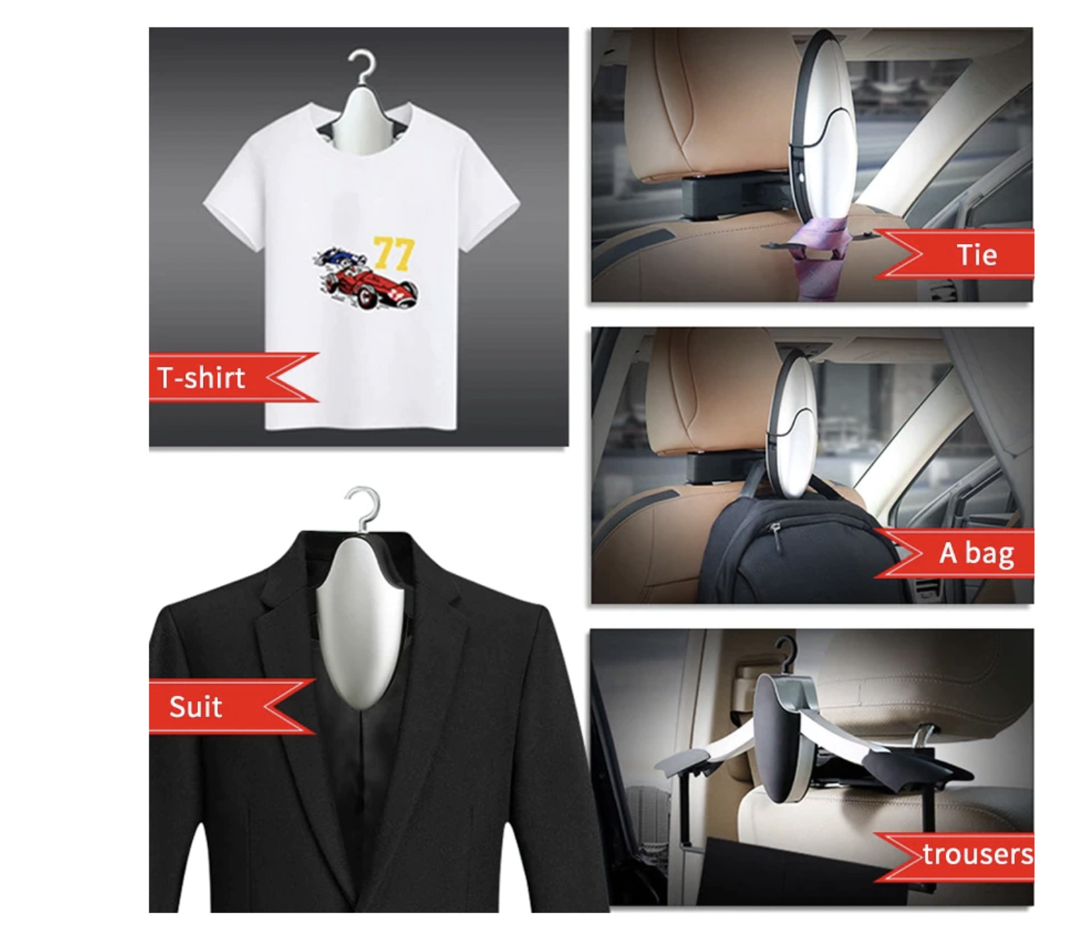 De acum nu mai ai probelma cu sifonarea hainelor in masina: sacoul va sta perfect pe tetiera uneia dintre scaunele din fata.