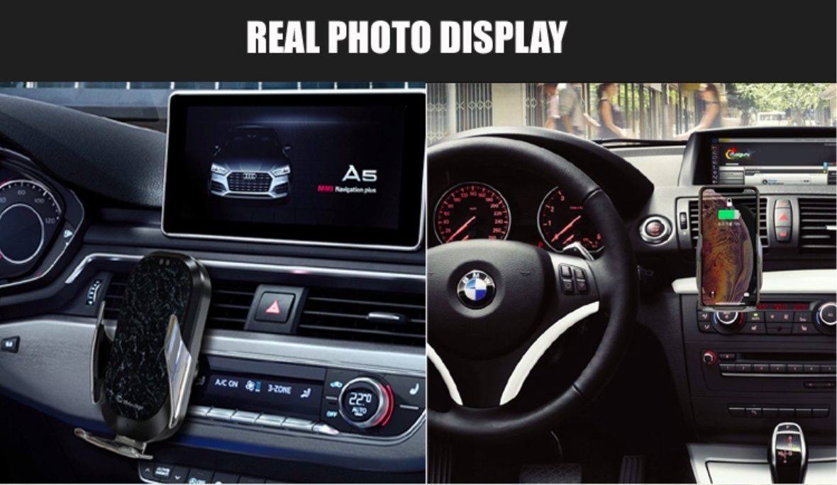 E-smartgadget , Incarcator Wireless AutoSuport, FAST CHARGE, ELEGANCE ,15W pentru iphone 8,8+,X,Xs,XsMax, samsung S8,9,Note8,9,S10, prindere grila ventilatie+Ventuza ,