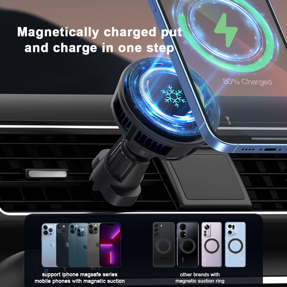 Suport de incarcare fara fir pentru masina magnetica de racire pentru iPhone 14/12/13 Pro/Samsung 15W Suport pentru aerisire de incarcare fara fir pentru telefon rapid