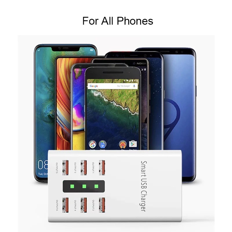 Incarcator USB universal cu 6 porturi smart usb fast charge, 30W, 6A, 1,5 m