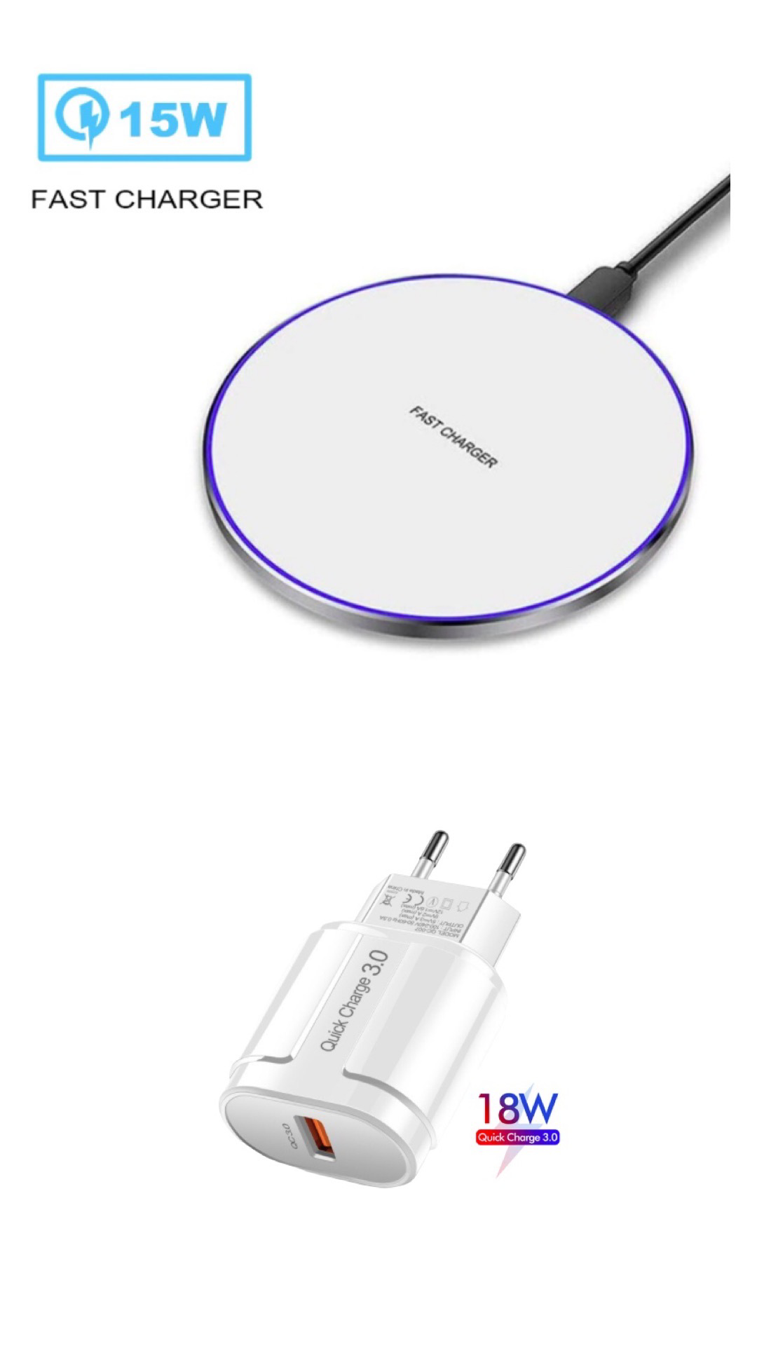 Încărcare rapidă fără fir Incarcator E-smartgadget, Aluminiu Ultra Slim 15W,ALB + Încărcătoare rapide Incarcator 18W 3.0