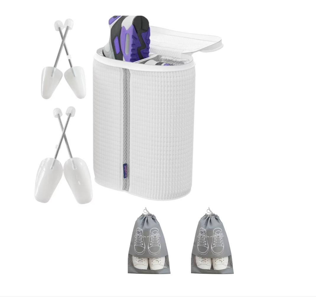 Kit 1 Sac pentru Spalarea Incaltamintei, Compartiment dublu, Reutilizabili, QUANDES®, 2 Set sanuri pantofi cu arc flexibil, Marimea 35 - 39, 40-47, Alb, 2 Huse protectie incaltaminte