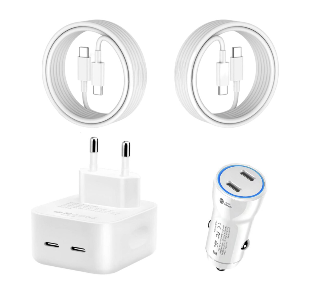 Kit Incarcator Dual USB-C 40W Fast Charger, 2 Cablu date USB-C-C 60W, 1M, incarcator auto Dual USB-C-C 60W, Compatibil cu iPhone16, 16 pro max, QUANDES®