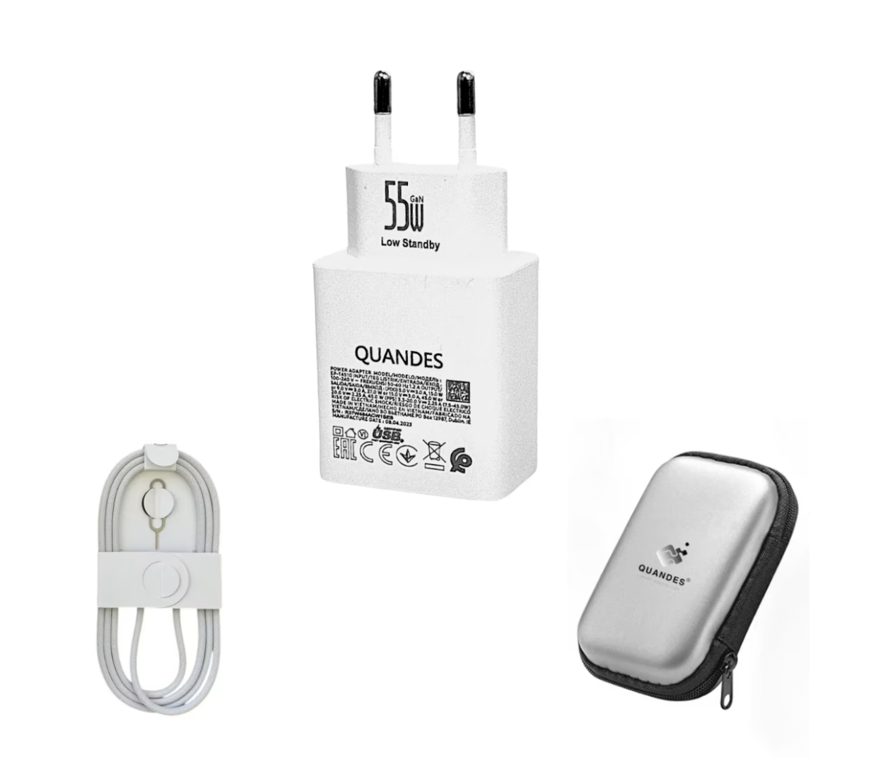 Kit Incarcator super Fast Charge 55W PD GaN usb C, cablu date C-C 60 1M Woven, compatibil cu iPhone 17/17pro/17 promax, Geanta de depozitare EVA