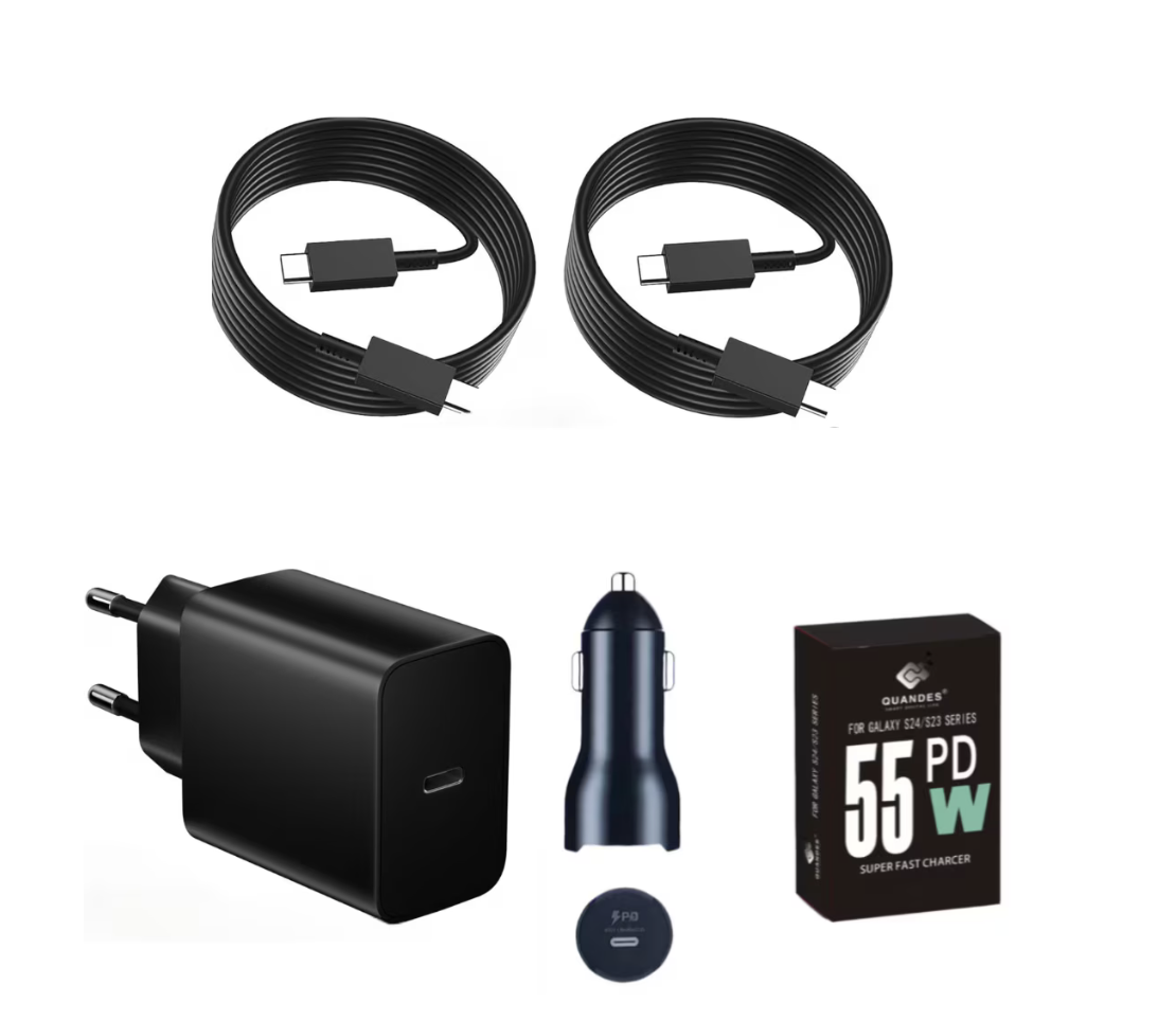 Kit Incarcator USB-C 55W GaN T4510, super Fast Charger, 2 Cablu date USB-C-C 5A, 1, 8M, incarcator auto USB-C-C 45W, Compatibil cu S25, S24, QUANDES®