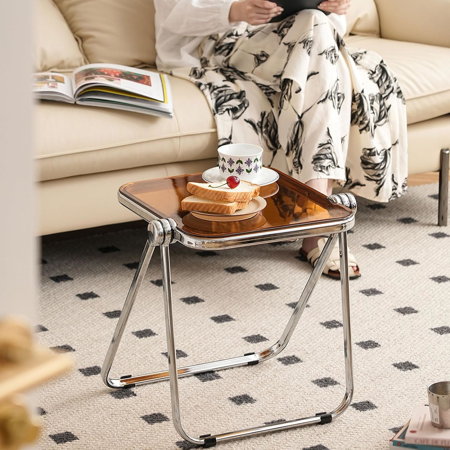 Masuta de cafea pliabila din acril, moderna, pentru canapea birou mic, noptiere, sufragerie, terasa, 40×35cm, orange