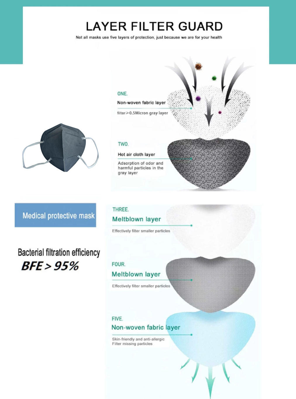 Set 10 bucati Masca de protectie KN95 FFP2 plus 4 bucati cutii portabile pentru depozitare