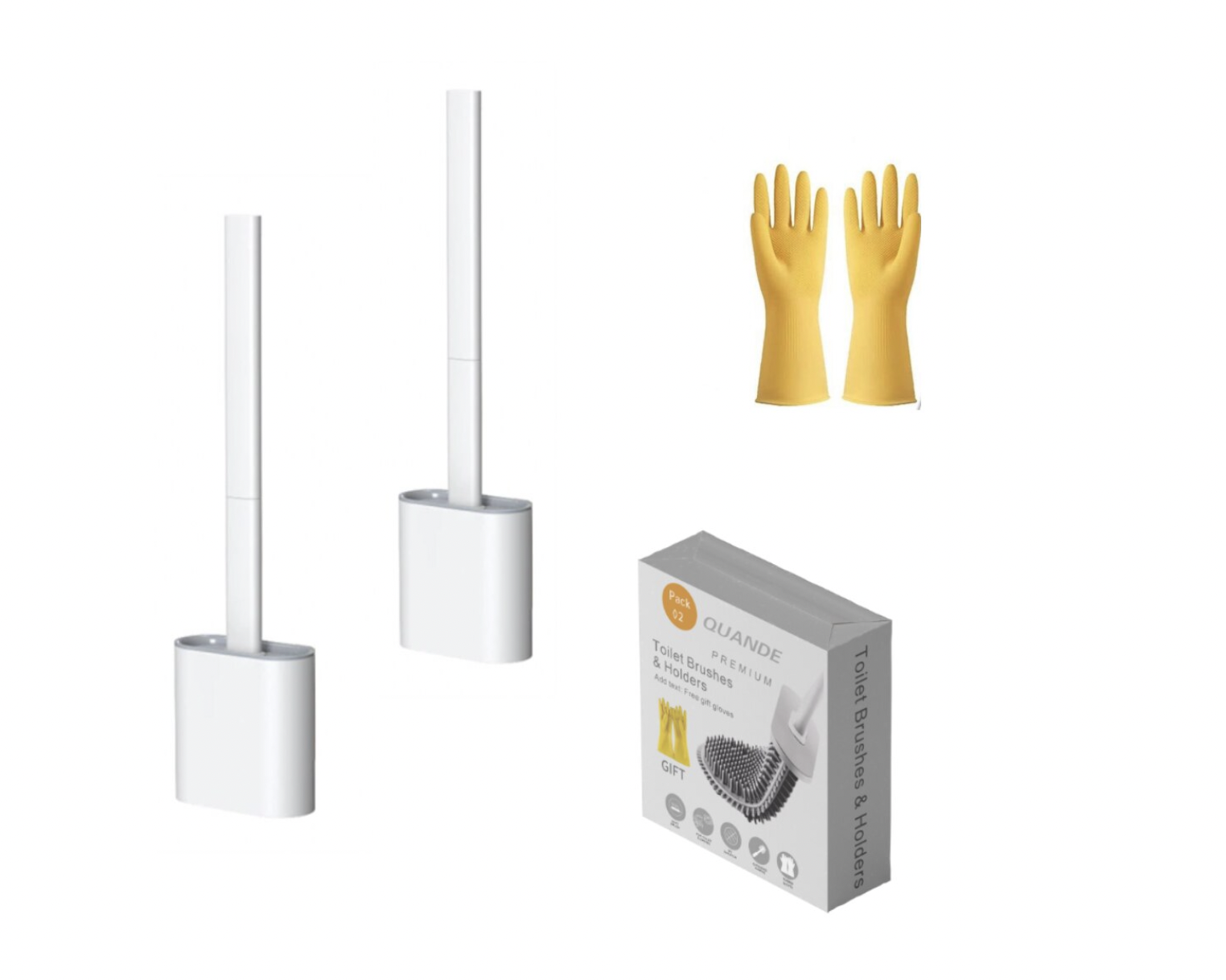 Set 2 perii silicon pentru igienizrea toaletei, alb, include manusi