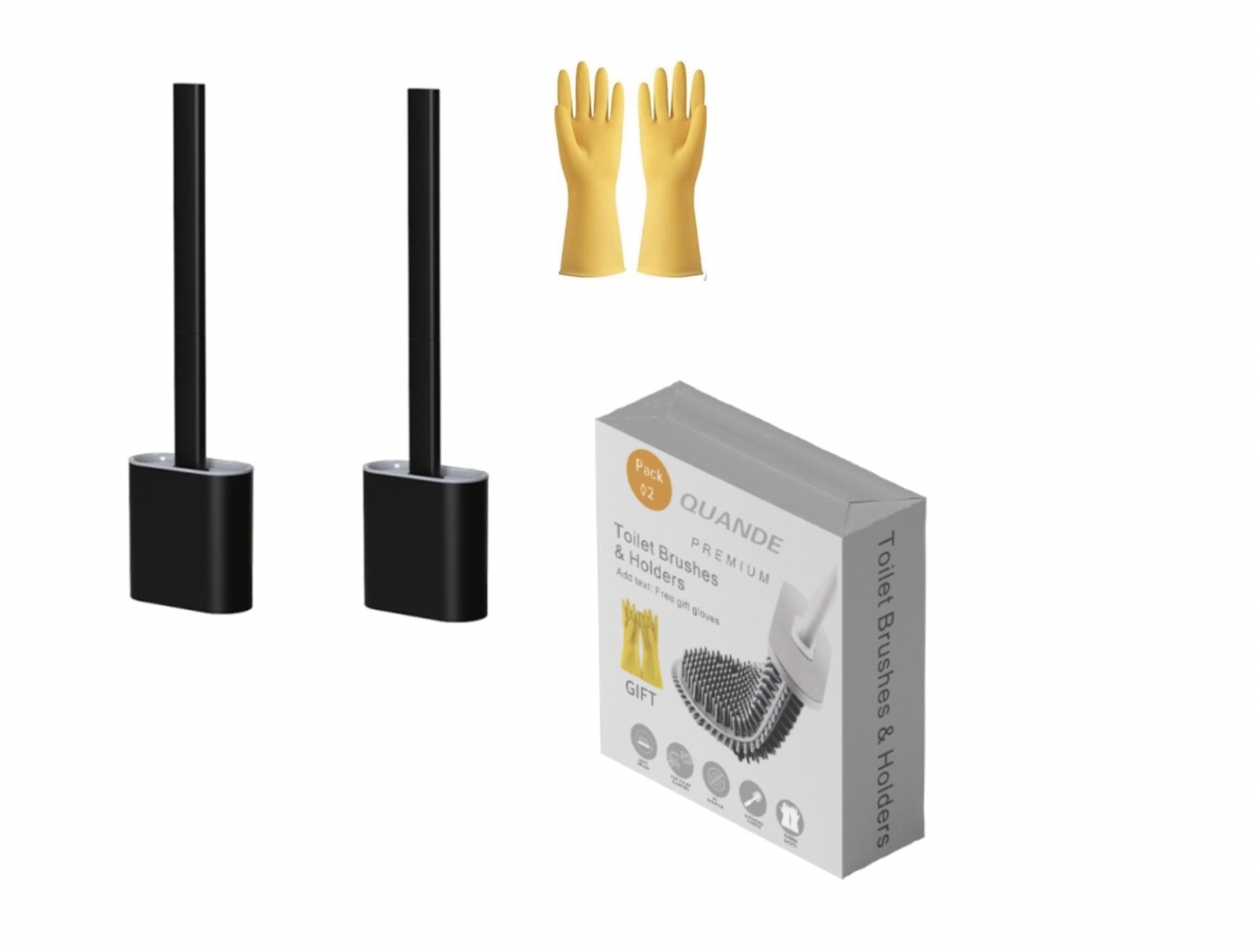 Set 2 perii silicon pentru igienizarea toaletei, Negru, include manusi