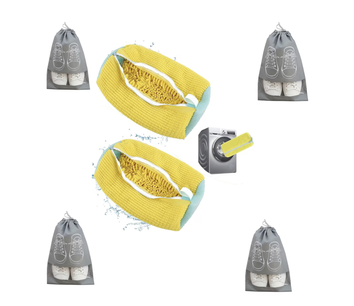 【2025 Sacul de spalat pantofi imbunatatit】1000 de peri si designul de blocare de siguranta asigura o curatare completa fara deteriorarea apei, decolorare sau deformare. Fa-ti pantofii sa para noi din nou si din nou. Fiecare pantof va fi la fel ca nou in doar cateva minute.