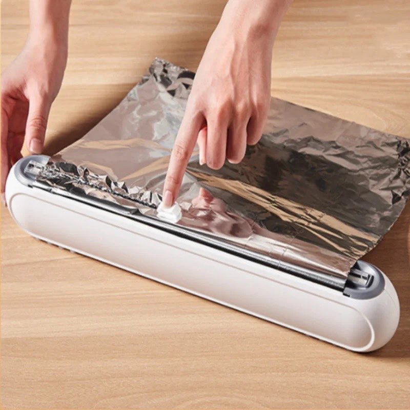 Recipient pentru folie alimentara, folie si hartie de pergament cu taietor pentru confortul gatirii si depozitarii alimentelor. Distribuitorul universal de folie alimentara va simplifica sarcina de utilizare - pur si simplu plasati rol in interiorul suportului si trageti peste marginea, controland lungimea, apoi rulati taietorul in orice directie, primind o parte uniforma a foliei sau orice alt consumabil. pentru bucatarie. Suportul foliei de bucatarie cu siguranta incorporata
