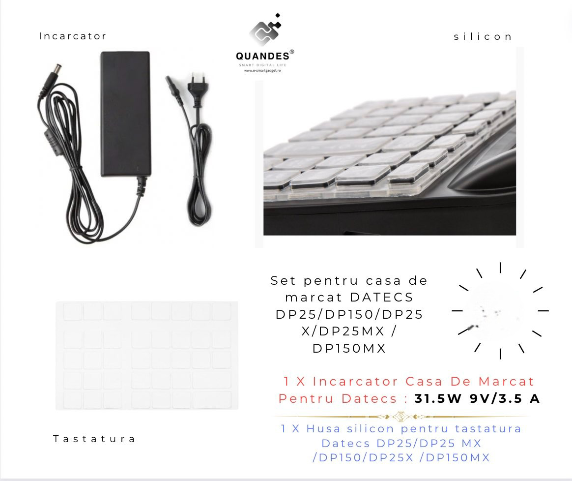 Set Incarcator casa de marcat pentru datecs, 31.5W 9V/3.5A DP25/X DP150/MX, si tastatura silicon pentru casa de marcat