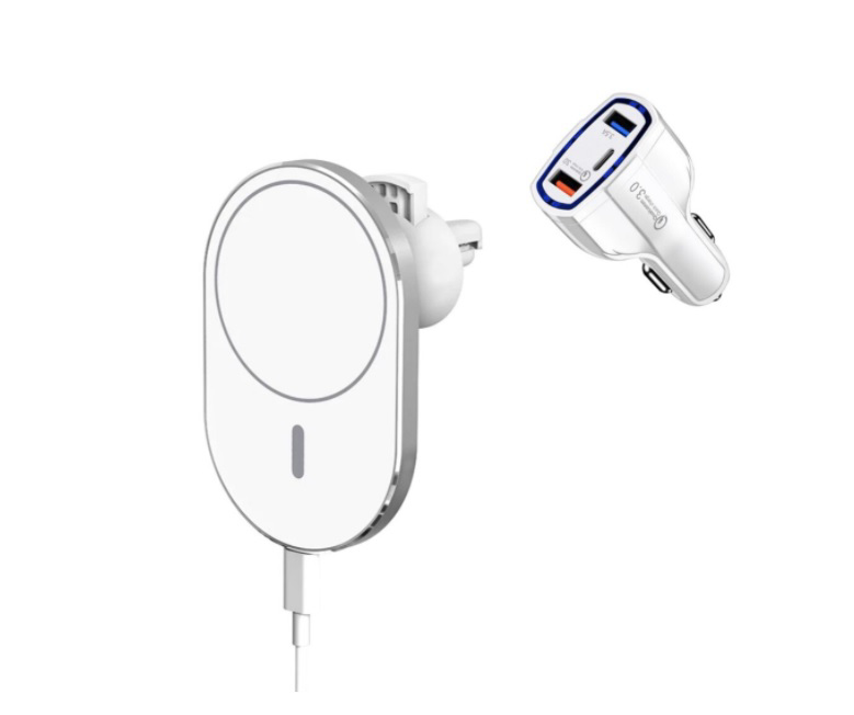 Set Incarcator magnetic wireless car incarcator alb, pentru iPhone 12/12 Pro/12 Pro Max/12 Mini, plus incarcator auto 7A.x16