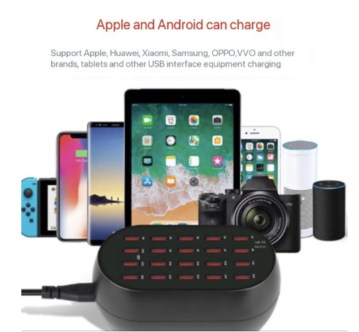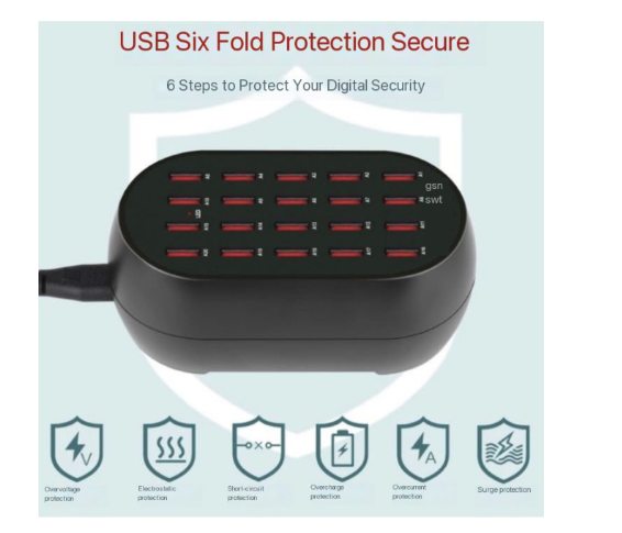 Statie de incarcare 100W QUANDES®, Smart cu 20 porturi USB 5V 20A si aerisire