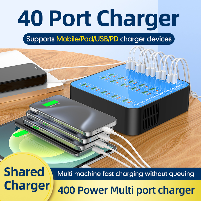 Incarcator USB PD de 400W cu 40 de porturi, cunoscut si sub numele de statie de incarcare inteligenta.
