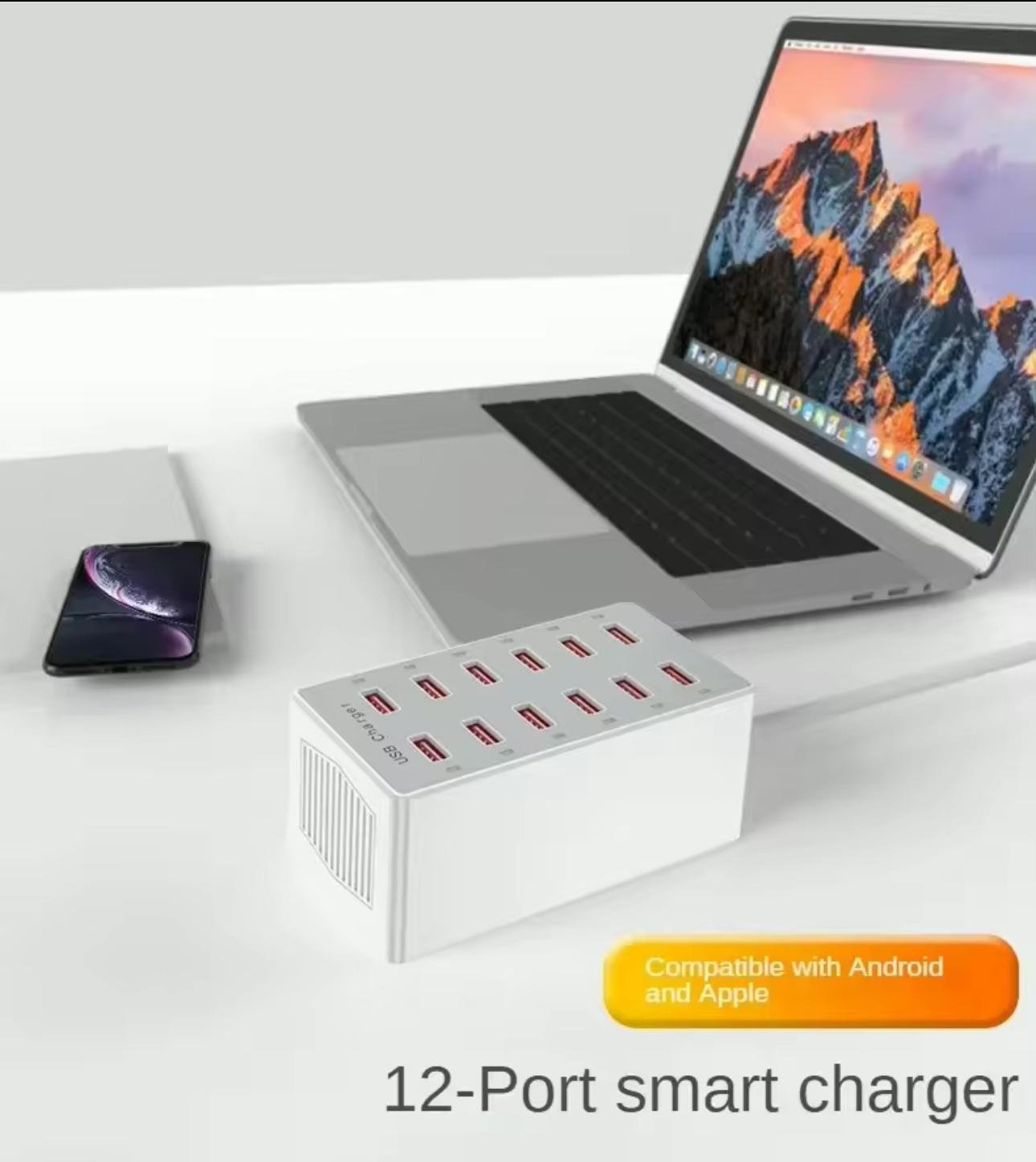 Statie de incarcare fast 60W, smart, ventilator cu 12 porturi USB 5V 20A, QUANDES®