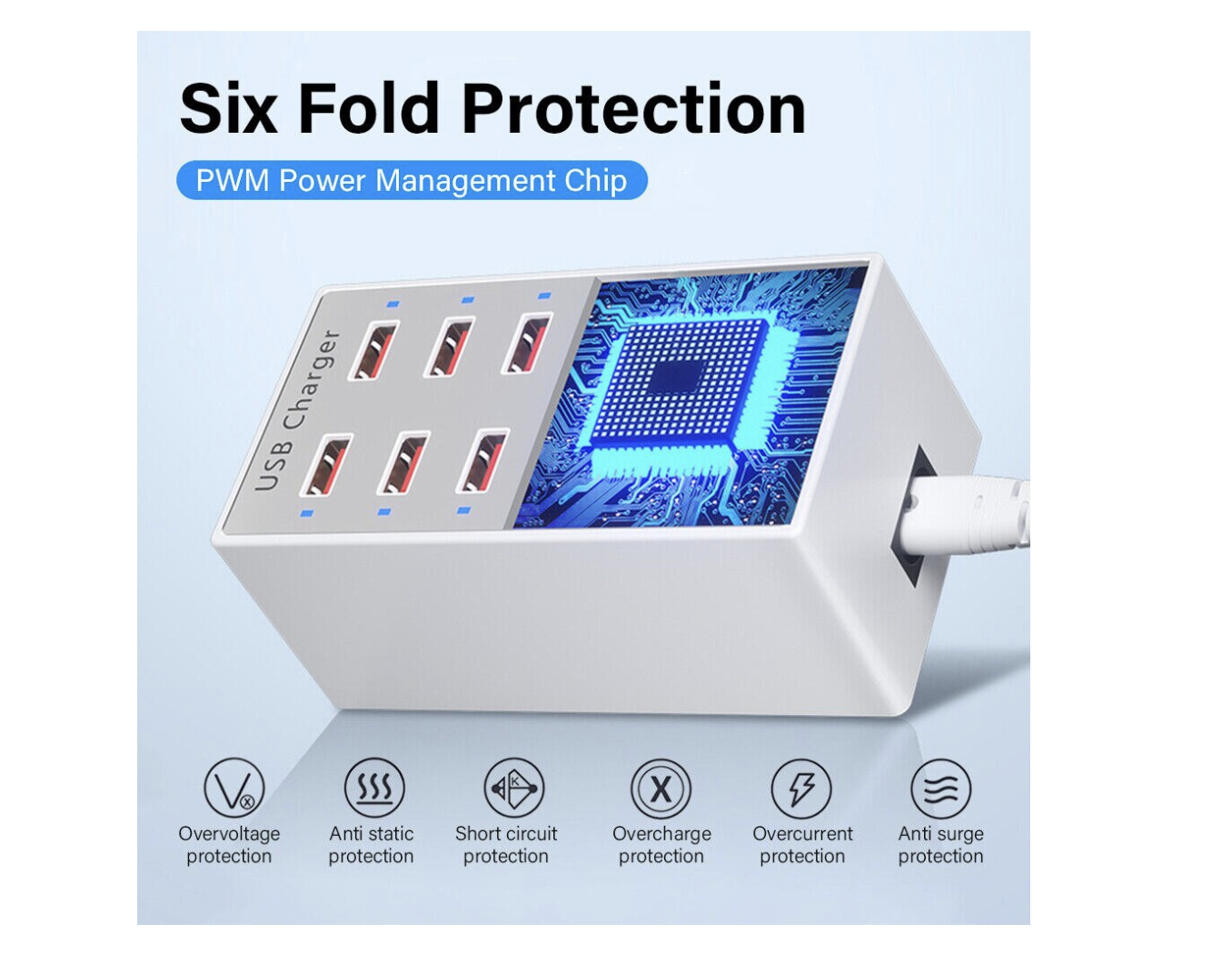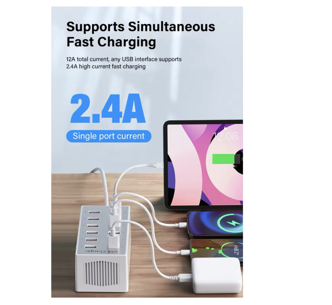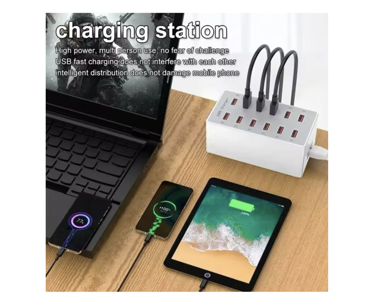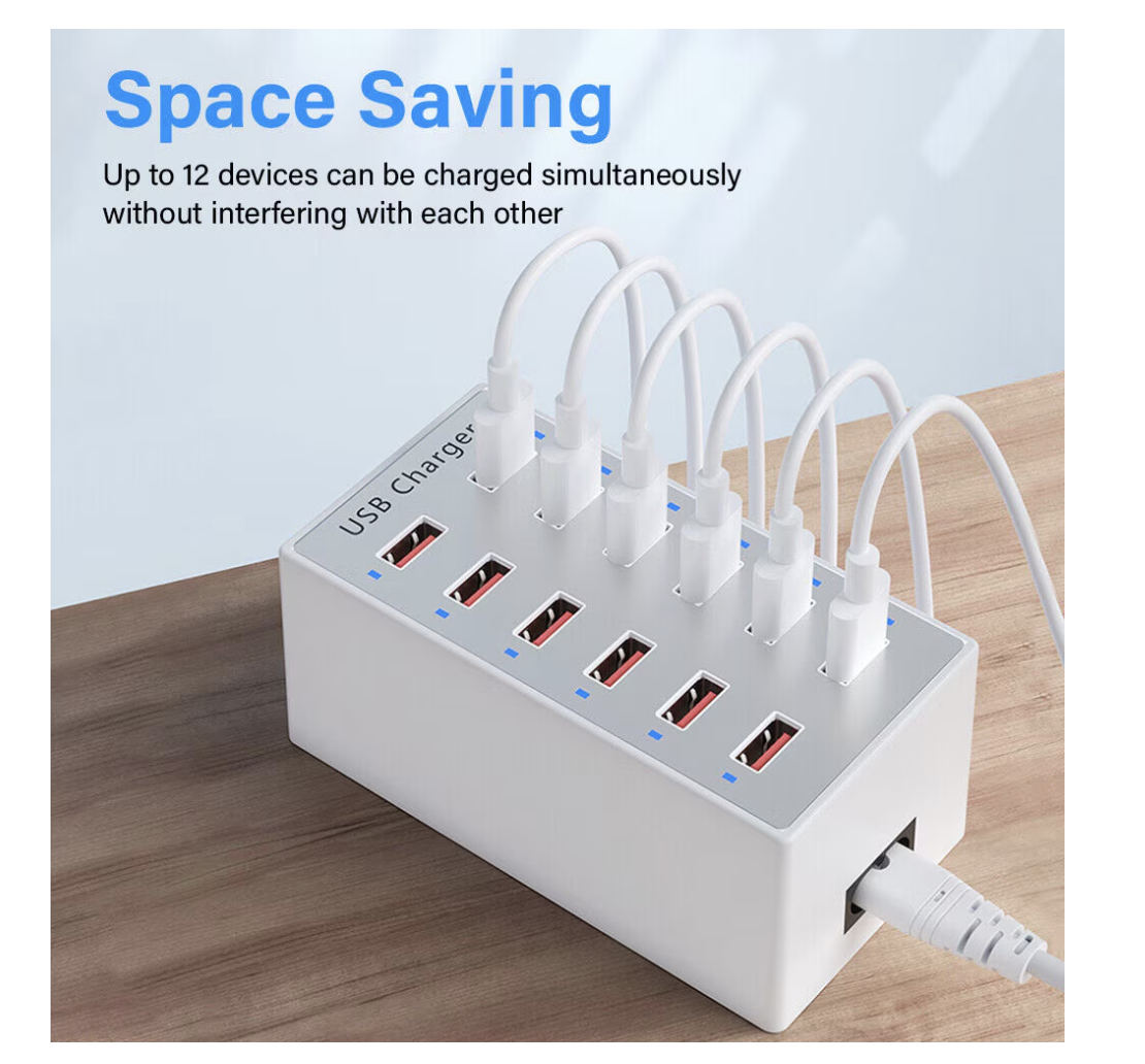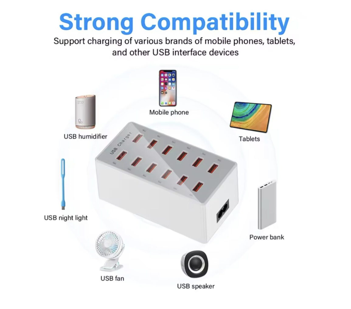 Statie de incarcare fast 60W, smart, ventilator cu 12 porturi USB 5V 20A, QUANDES®